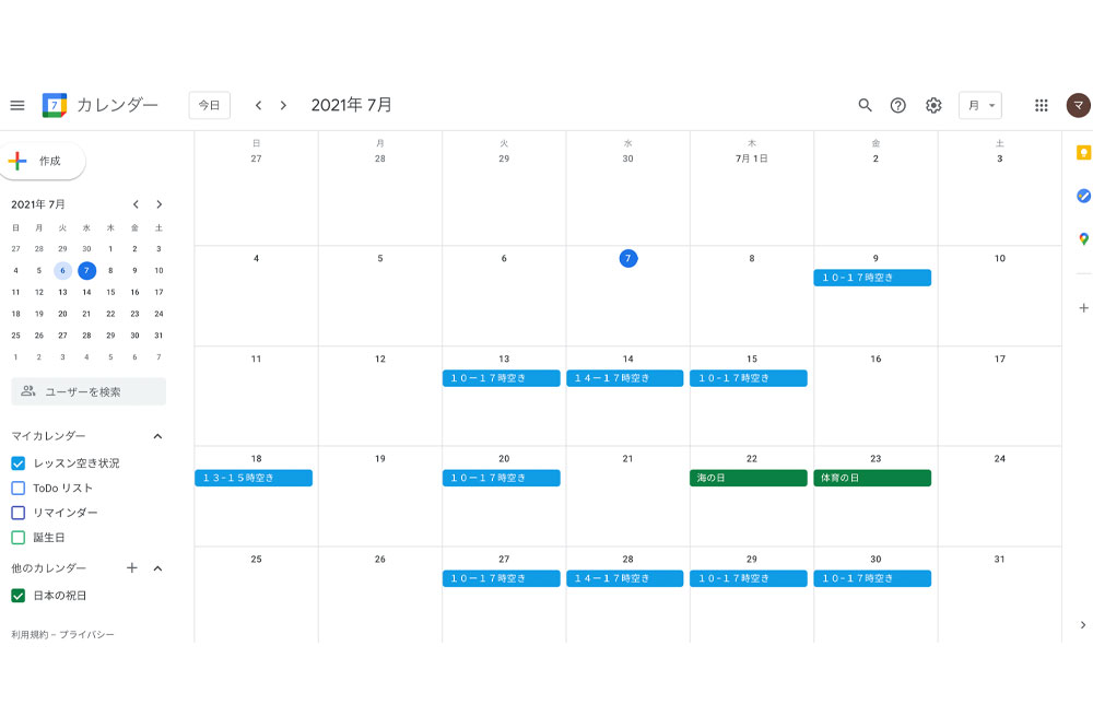 このようにお見せするために、私は普段使っているアカウントとは別のアカウントで、Googleカレンダーを使っていますが。
