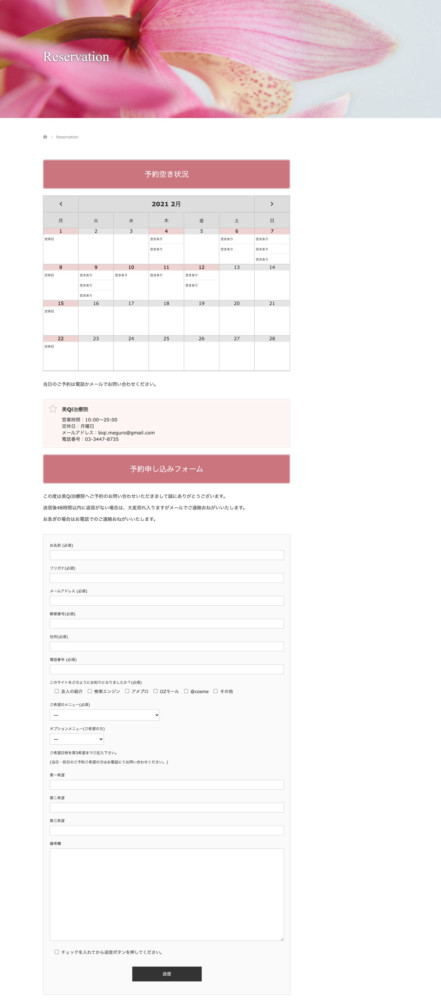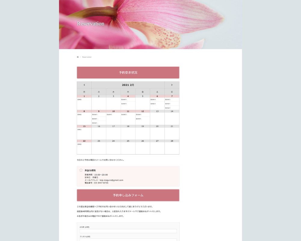 受講生のかたが作られたホームページでは、ご予約フォームの上にもカレンダーを表示させています。