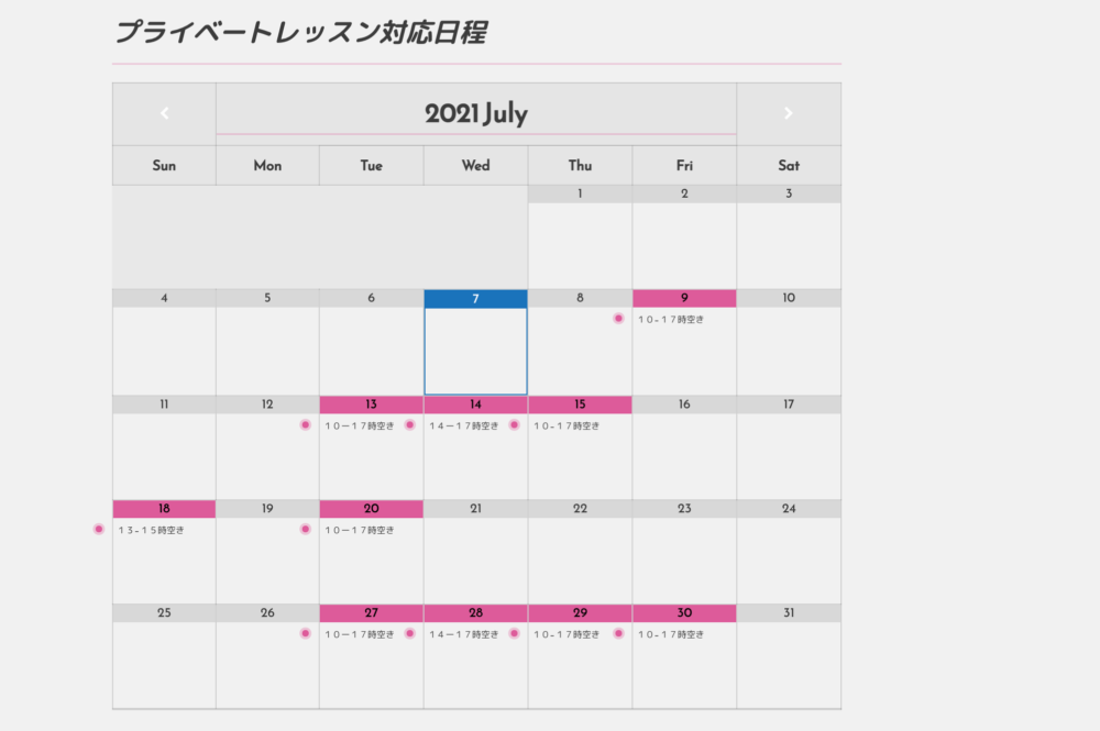 現在、このウェブサイトでも、このSimpleCalendarを採用して、レッスン日程を表示してます。